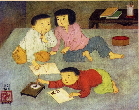 | "La calligraphie", 1956, de Mai Trung Thu. |