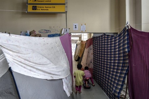 Des protestations récurrentes ont eu lieu ces derniers mois au sujet de ce camp, qui outre le hall d'arrivée de l'ancien aéroport comprend d'anciens sites des Jeux olympiques de 2004 abandonnés.