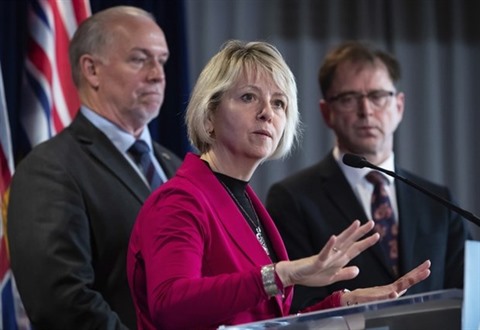 | La médecin hygiéniste en chef, Bonnie Henry, a annoncé la mort d'un résident d'un centre de soins de longue durée de Vancouver, lors d'un point presse, le 9 mars. |