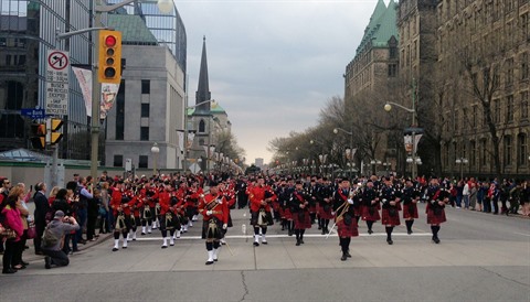 | Des soldats canadiens rejoignent les défilés à Ottawa en 2014. |