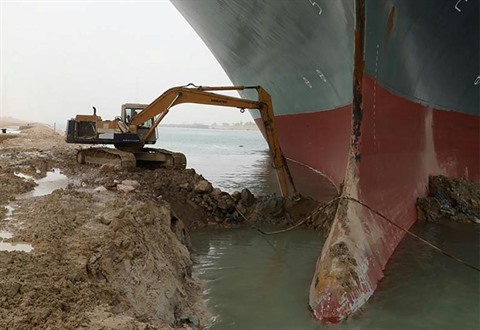 Jeudi 25 mars, l'autorité a déclaré que des opérations de dragage étaient en cours pour dégager le navire coincé en retirant 15.000 à 20.000 m3 de sable autour de la proue du navire.