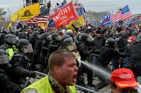 | Des supporters de Trump affrontent la police le 6 janvier devant le Capitole. L'invasion du Congrès a fait 5 morts en tout. |