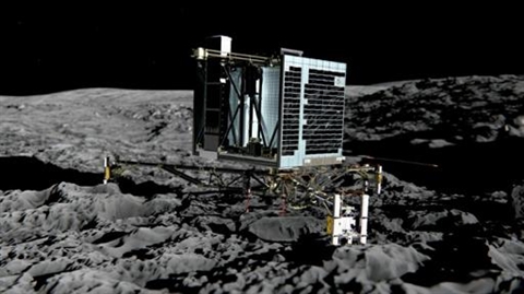 | Cette photo, diffusée par l'Agence spatiale européenne le 20 décembre 2013, montre une vue d'artiste de Philae installé sur la comète "Tchouri". |