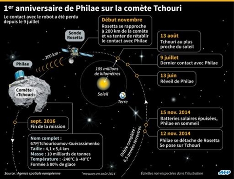| 1er anniversaire du robot Philae sur la comète Tchouri : chronologie de la mission de Rosetta et Philae". |