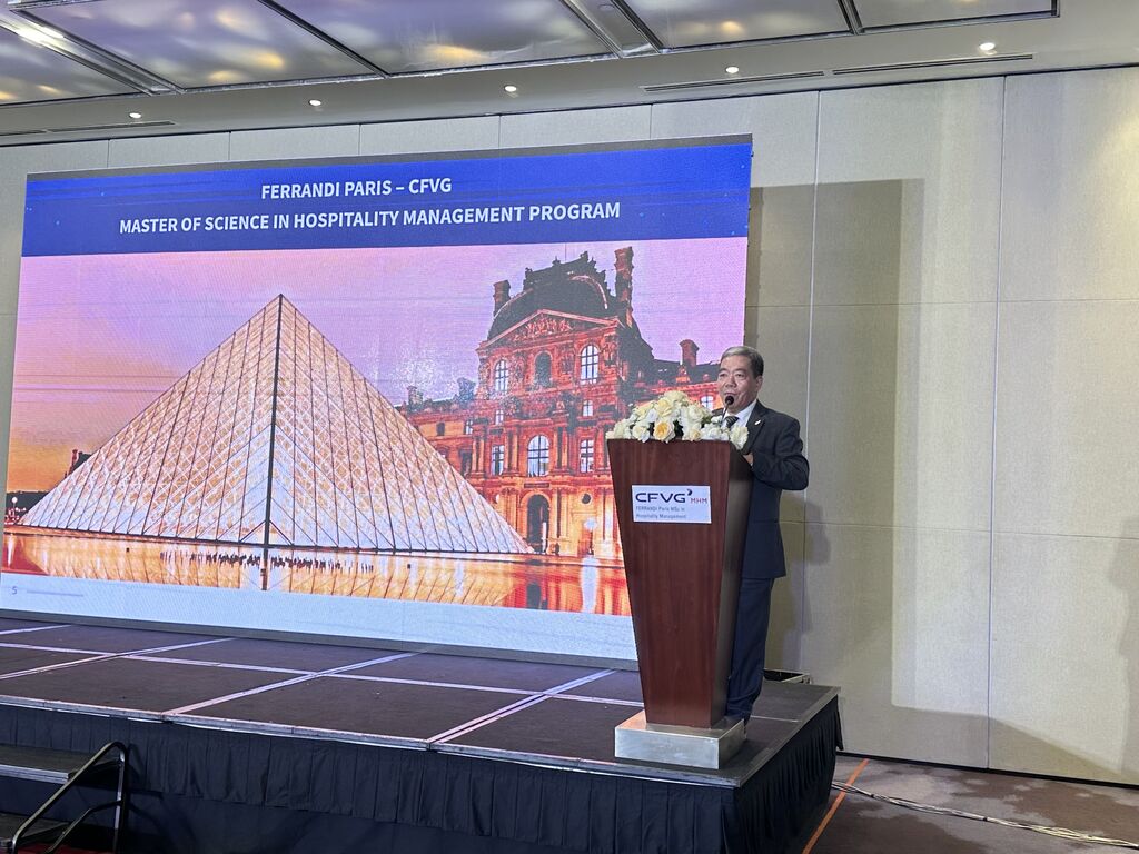 À propos du programme, le Prof. Dr. Rodolphe Bardot, directeur académique et du développement des programmes master à FERRANDI Paris, a souligné que le lancement du MSc en gestion du tourisme et de l’hôtellerie au Vietnam marque une étape importante pour le secteur. Selon lui, la collaboration entre FERRANDI Paris et le CFVG apporte non seulement des standards académiques internationaux, mais contribue également à façonner l’avenir de l’industrie touristique et hôtelière dans la région.