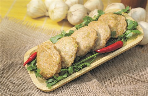 La viande de porc doit être de préférence mélangée avec un peu de graisse, ce qui lui permet de n’être ni trop sèche, ni trop molle lorsqu’elle est frite. Puis, elle est minutieusement pilée et assaisonnée avec du nuoc mam et du sucre.