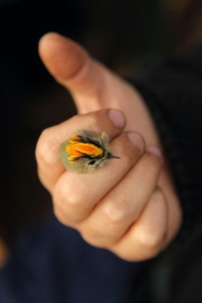 Avec ses doigts épais et son allure de colosse, Jaroslaw Nowakowski n'en a pas l'air mais cet ornithologiste polonais de l'Université de Gdansk libère d'un geste sûr et délicat les ailes fragiles de ce roitelet huppé qui pèse 4,5 grammes. Il le range dans un petit sac en coton et le transporte dans un laboratoire aménagé sous une tente.