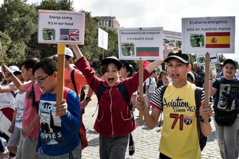| Des écoliers manifestent pour interpeller les gouvernements sur le réchauffement climatique, |