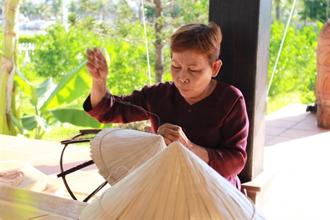 | Fabrication de chapeaux en feuilles dans le site touristique Champa Island à Nha Trang, province de Khanh Hoà (Centre). |