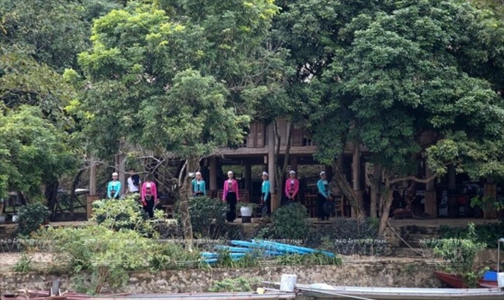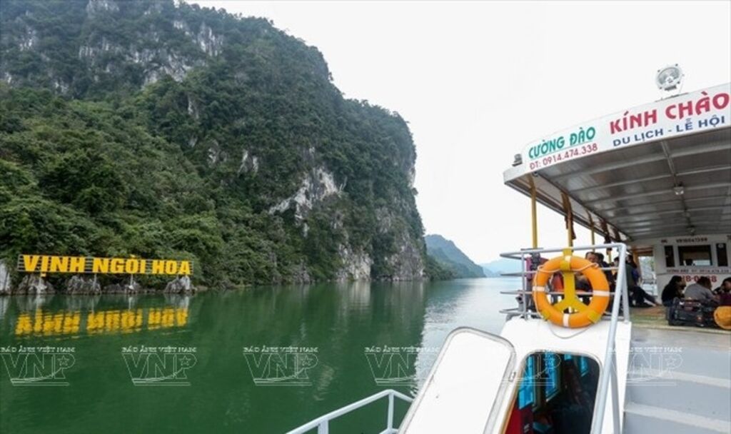 Une fois sur le bateau, les visiteurs peuvent contempler le charmant paysage le long des deux rives. Le bateau s’arrête parfois devant des sites intéressants, par exemple les grottes Thac Bo, Hoa Tiên, Bung ou la magnifique baie Ngoi Hoa.