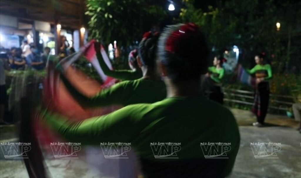Une fois rassasiés, les visiteurs peuvent assister à des spectacles. Autour d’une jarre d’alcool de riz, sucré et parfumé, les visiteurs peuvent participer aux danses à l’éventail, “sinh tiên”, “sap”... pour s’immerger le temps d’une soirée dans la riche culture Muong.