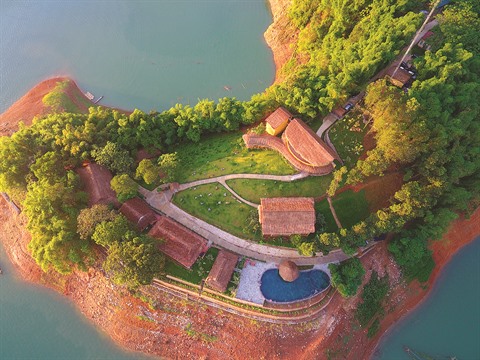 En regardant d'en haut, le lac apparaît tranquille, peuplé de centaines d'îlots. Au loin, nichés dans les montagnes, de petits hameaux Muong attirent aussi le regard. Une nature généreuse dont la beauté donne aux habitants locaux un certain calme.
