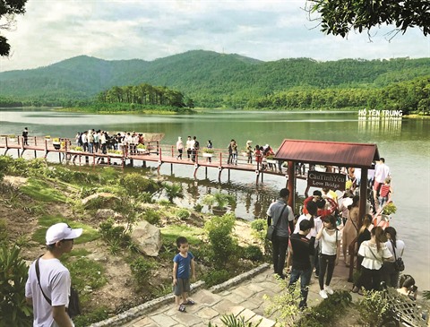 | Touristes visitant le lac Yên Trung à Quang Ninh (Nord). |