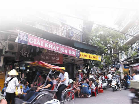 | À Hanoi, c’est tout naturellement que l’on vous invitera à prendre un café en terrasse au bord d’une des routes les plus fréquentées. Photo : CTV/CVN |
