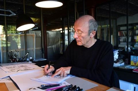 | Le dessinateur belge Philippe Geluck, dans son studio à Bruxelles, le 8 novembre. |