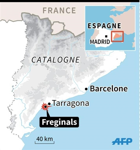 | Carte de localisation de l'accident d'autocar en Espagne le 20 mars. |