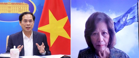 | Le ministre des Affaires étrangères Bùi Thanh Son (gauche) et l'envoyée spéciale du secrétaire général des Nations Unies pour le Myanmar Noeleen Heyzer. |