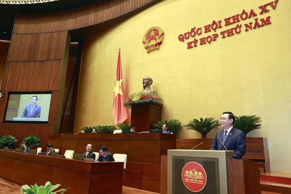 | Le président de l’Assemblée nationale, Vuong Dinh Huê, s'exprime devant l'Assemblée nationale, le 7 juin. |