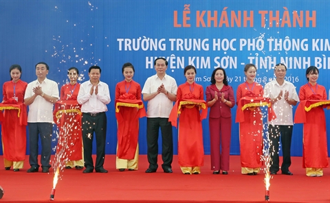 | Le président Trân Dai Quang (centre) coupe le 21 août le ruban inaugural du lycée Kim Son B à Ninh Binh (Nord). |
