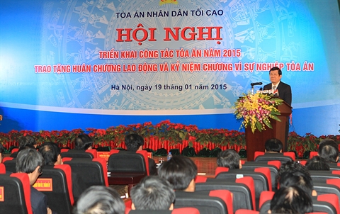 Pour 2015, Truong Tân Sang a invité les tribunaux de tous les échelons à assurer l'application de la Constitution de 2013, de la Loi sur l'organisation des tribunaux populaires (amendée) et des Résolutions de l'Assemblée nationale liées à leurs activités...
