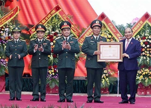 | Le président Nguyên Xuân Phuc (gauche) remet l'Ordre de la protection de la Patrie de troisième classe à la Légion 11, le 9 juin. |
