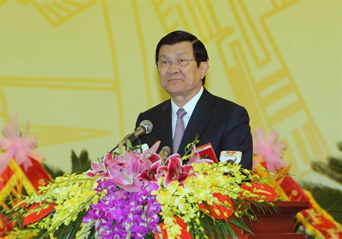 | Le président du Vietnam, Truong Tân Sang, prend la parole lors du XVIe Congrès du Parti communiste du Vietnam pour la province de Hoà Binh (Nord), tenu le 15 septembre dans cette province. |