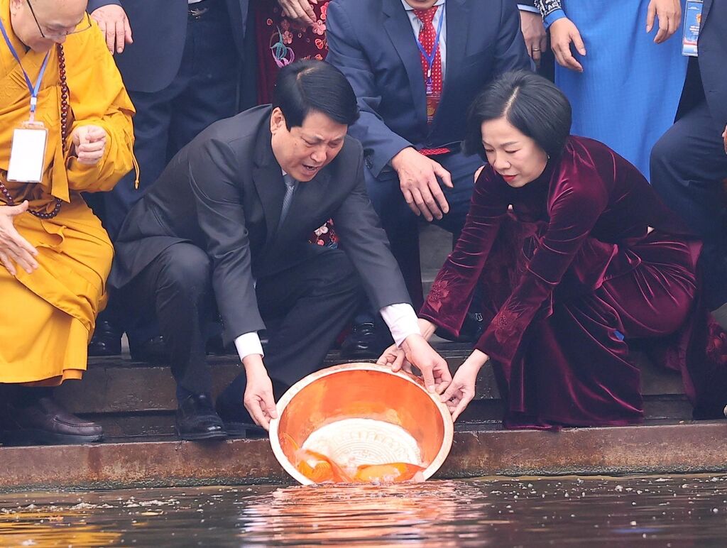 Après la cérémonie, le président, son épouse et les représentants de la diaspora ont participé à un lâcher de carpes au bord de l’étang de l’Oncle Hô, situé dans l’enceinte du site historique du Palais présidentiel.