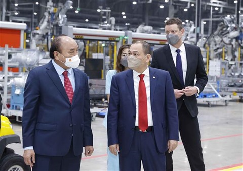 | Le chef de l'État, Nguyên Xuân Phuc (gauche), et le président de Vingroup, Pham Nhât Vuong, à |