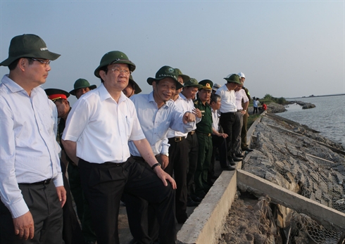 | Le président Truong Tân Sang (2e, gauche) inspecte les 3 et 4 mars les digues maritimes du delta du Mékong. |