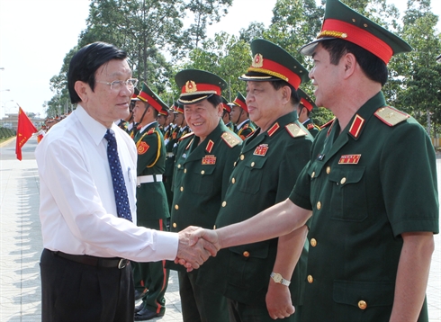 | Le chef de l'État, Truong Tân Sang, s'est rendu le 4 mars au commandement de la IXe Région militaire. |