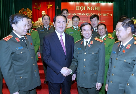 Le chef de l’État a salué les résultats de travail des forces de police populaire en 2016 et leurs efforts dans la garantie de la sécurité nationale et de l’ordre public, en particulier la protection réussie du XIIe Congrès national du PCV, des élections des députés de l’Assemblée nationale de la XIVe législature et des membres des Conseils populaires de tous échelons pour 2016-2021, le contrôle de la criminalité, et l’enquête de nombreuses affaires pénales et économiques.