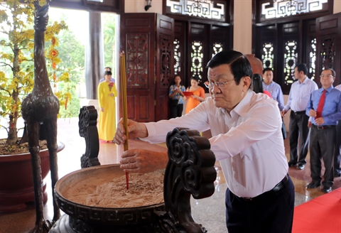 À cette occasion, Truong Tân Sang est allé offrir de l’encens aux sites commémoratifs du président du Conseil des ministres Pham Hùng, de l'ancien Premier ministre Vo Van Kiêt, ainsi que du professeur et académicien Trân Dai Nghia.
