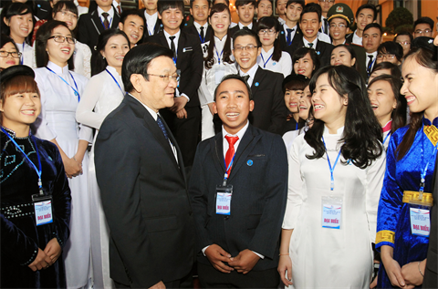 >>Le président Truong Tân Sang rencontre des jeunes exemplaires