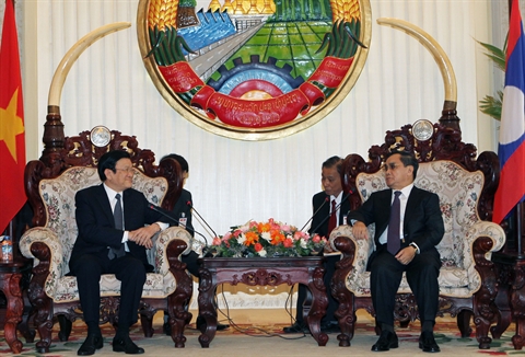 Le chef de l'État vietnamien et le Premier ministre lao ont discuté de l'application des accords bilatéraux. Ils sont convenus de prendre des politiques pour mieux favoriser le commerce et l'investissement entre les deux pays afin de porter le commerce bilatéral à 2 milliards de dollars en 2015. Thongsing Thammavong s'est engagé à aider les investisseurs vietnamiens à assurer le rythme de leurs projets au Laos. Les deux parties ont décidé en outre d'approfondir leur coopération dans la défense et la sécurité et dans la lutte contre la criminalité, ainsi que d'achever le projet de densification et de réhabilitation des bornes frontalières en 2015.