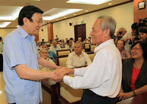 | Le président du Vietnam, Truong Tân Sang, rencontre mardi 14 octobre des électeurs des 1er et 3e arrondissements de Hô Chi Minh-Ville. |