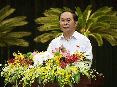 | Le président Trân Dai Quang à la rencontre des entrepreneurs de Hô Chi Minh-Ville, le 3 octobre. |
