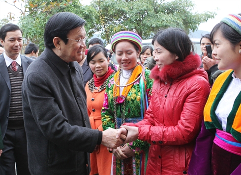 | Le président Truong Tân Sang formule ses vœux de Nouvel An lunaire à la population ethnique du district de Mèo Vac, province montagneuse de Hà Giang (Nord). |