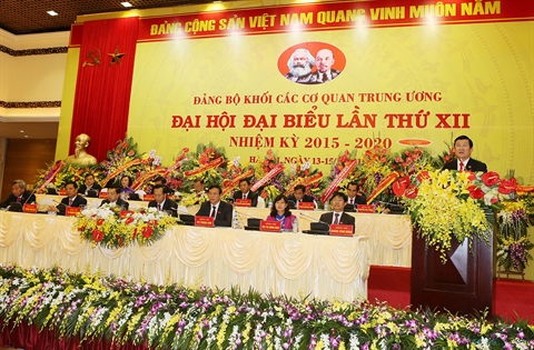 Le XIIe Congrès de l’organisation du Parti du bloc des organes centraux pour le mandat 2015-2020 a pour objet d’évaluer l’application de la Résolution du XIe Congrès durant ces cinq dernières années, et de définir des orientations futures. Lors de la première journée, les participants ont convenu de continuer de resserrer la solidarité, de promouvoir le rôle pionnier des membres du Parti, d’améliorer la direction et la combativité des organisations du Parti, d’appliquer au mieux la Résolution du 4e Plénum du Comité central du XIe mandat. Ils ont également décidé de poursuivre la réforme et de demander aux échelons de définir les priorités pour le nouveau mandat.