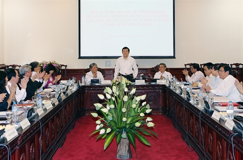 | Le président du Vietnam, Truong Tân Sang (debout), lors d'une séance de travail avec le Comité du Parti pour le ministère de la Justice, le 28 juillet à Hanoi. |