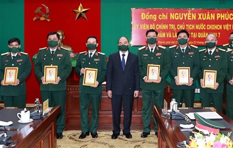 Le chef de l'État a félicité la VIIe Région militaire pour ses efforts visant à soutenir les comités locaux du Parti et les autorités de la région pour contenir la propagation de la pandémie de COVID-19 et empêcher l'entrée illégale dans les zones frontalières.