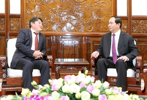 | Le président Trân Dai Quang (droite) et l'ambassadeur mongol Dorj Enkhbat, |