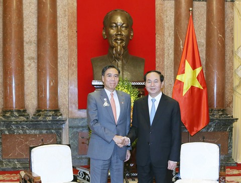 | Le président Trân Dai Quang (droite) et le gouverneur de la préfecture japonaise de Nagano, Shui Chi Abe, |