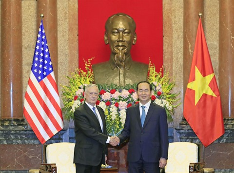 | Le président vietnamien Trân Dai Quang (droite) a reçu, le 25 janvier à Hanoï, le secrétaire d’État américain à la Défense, James Mattis. |