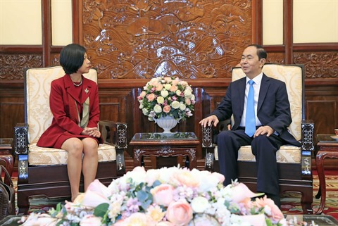 | Le président vietnamien Trân Dai Quang et l’ambassadrice canadienne Ping Kitnikone, le 26 juillet à Hanoï. |