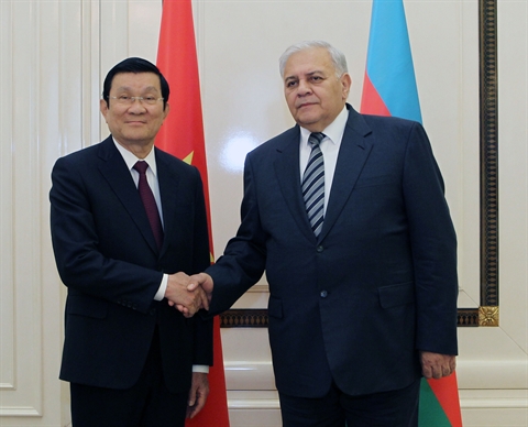 | Le président de la République, Truong Tân Sang (gauche), et le président de l'Assemblée nationale azerbaïdjanaise, Ogtay Asadov. |