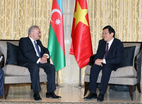 | Le président de la République, Truong Tân Sang (droite), a rencontré le Premier ministre azerbaïdjanais, Artur Rasizade, le 14 mai à Bakou. |