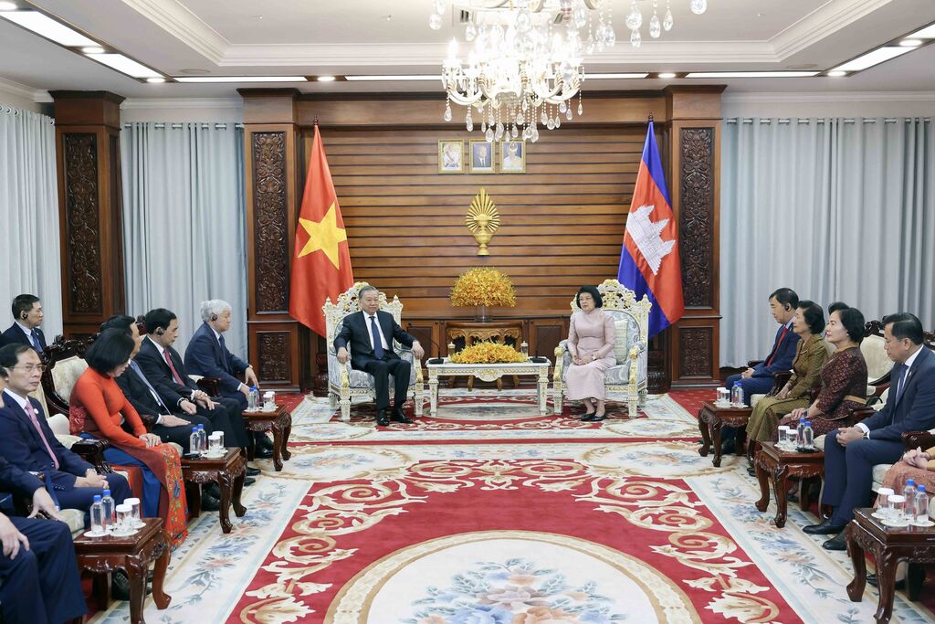 | Le chef de l'État vietnamien Tô Lâm et la présidente de l'Assemblée nationale cambodgienne (AN), Khuon Sudary. |