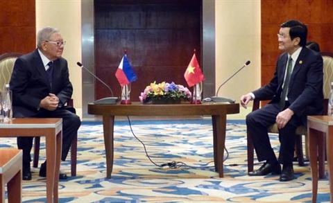 | Le président vietnamien Truong Tân Sang (droite) et le président de la Chambre des représentants des Philippines, Feliciano J.Belmonte. |
