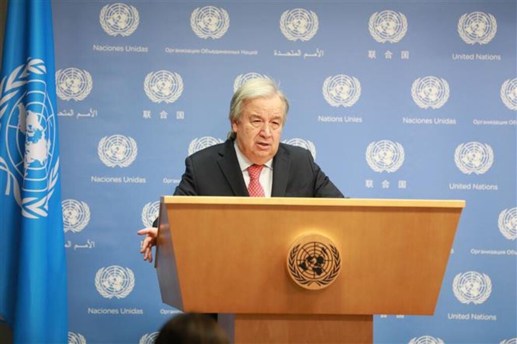 | Le secrétaire général des Nations unies, Antonio Guterres, prend la parole lors d'un point presse à New York. |