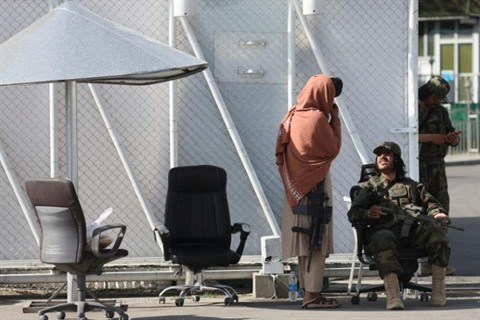 | Garde taliban à l'aéroport de Kaboul, le 13 septembre. |